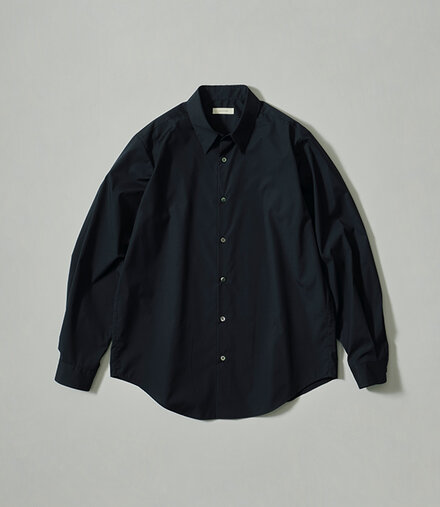 ハリ感のあるタイプライター素材を使用した、ミニマルなシャツ。