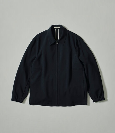 梳毛ウールのトロピカル生地の風合いをポリエステルで再現した、軽やかなジップブルゾン。