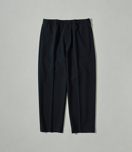 ウエストはイージーパンツ仕様でストレスフリーな穿き心地ながら、ウエスト部分を隠せば梳毛スラックスのような端正な見た目に。